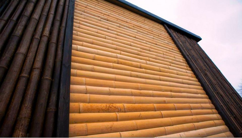 50mm diameter natural yellow bamboo slat placed horizontal. All timbers were treated with a burn and wax finish in keeping with the natural black screens.